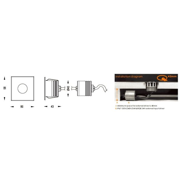 D2XAS0657, D2XAS0618(RGB) 24V 110 - 240V 1 * 2W 3W LED Square Cover Underground Wooden Floor Lights with Frosted Lens and External Driver